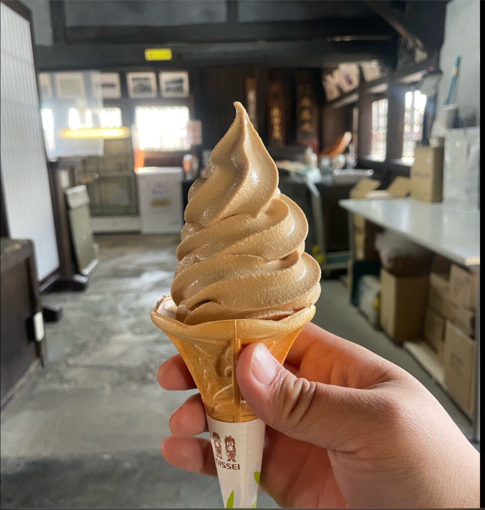 右の写真は、地元で江戸時代から営む醤油蔵の岡直三郎商店さんにて、「日本一しょうゆ」マイボトル製作で頂いた貴重な逸品!:「醤油なんてどれも同じ」と思っている人は、スルーしてください。岡直三郎商店さんのマイオーナー制度、私だけの『水のある風景』ーこの香りの良さを言葉にするのは野暮だし、これ以上ファンが増えるのも複雑ですが、一応リンクだけ置いておきます。正直、教えるんじゃなかったかな。真ん中は醤油屋さんのアイスクリーム、何故か香ばしい醤油味……失礼!蜜の味!これもなかなかですよ!、醤油を知り尽くした老舗が提供するソフトクリームは、まさに「知る人ぞ知る絶品スイーツ」です。
