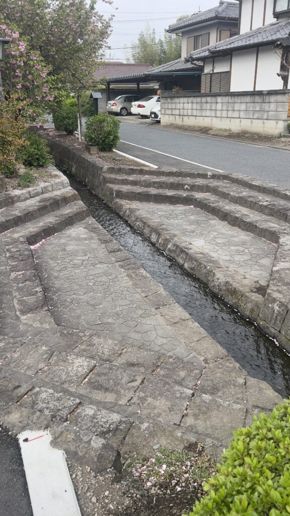 白井宿の最大の特徴は、道路の真ん中を流れる「長屋門と水路(堰)」です。